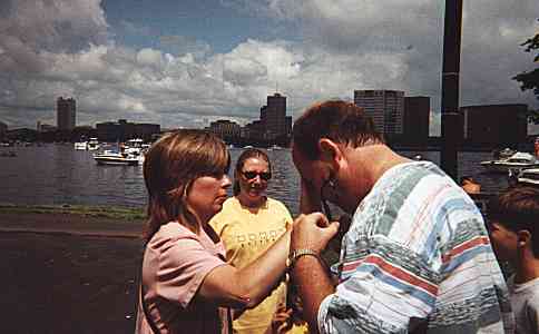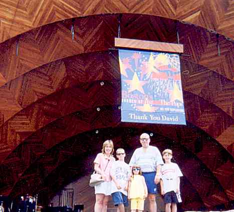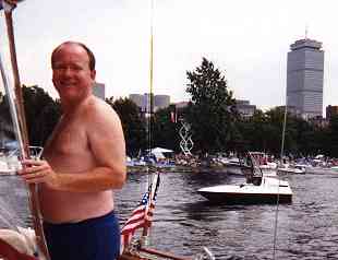 we took "Here's Howe" up to the Esplanade in Boston to see the fireworks. We rafted with another boat, "Friends First", and shortly after we settled in, a 007 boat came by, and we met Squires, Doug Squires.The cannons and fireworks were great, and the next day we went ashore for the chowder-fest, and took in the family Von-Trapp.