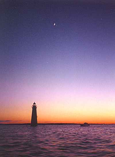 the moon over Minot Lighthouse and "Friends First" on the way home