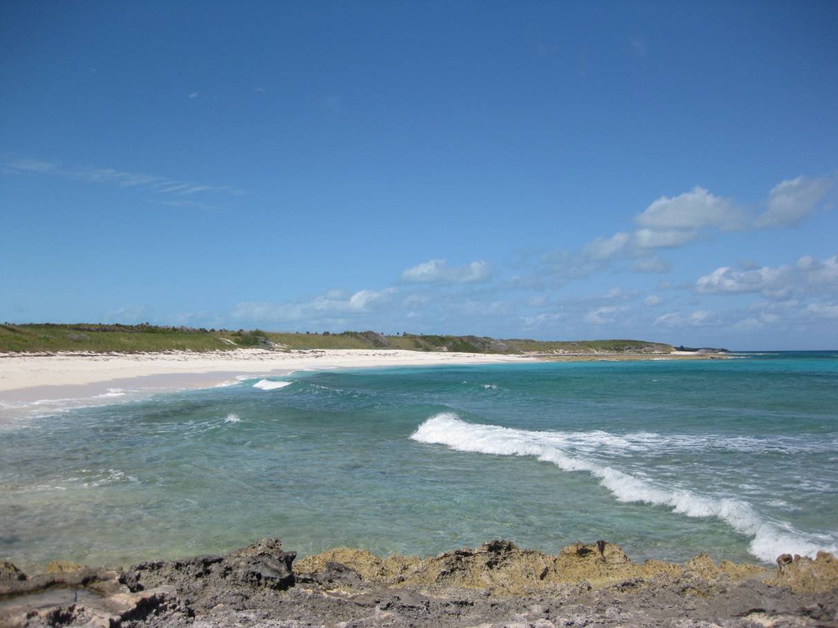 skipper Billy was able to get us to shore without hurting the boat. Devil’s Cay beach is about a mile long and